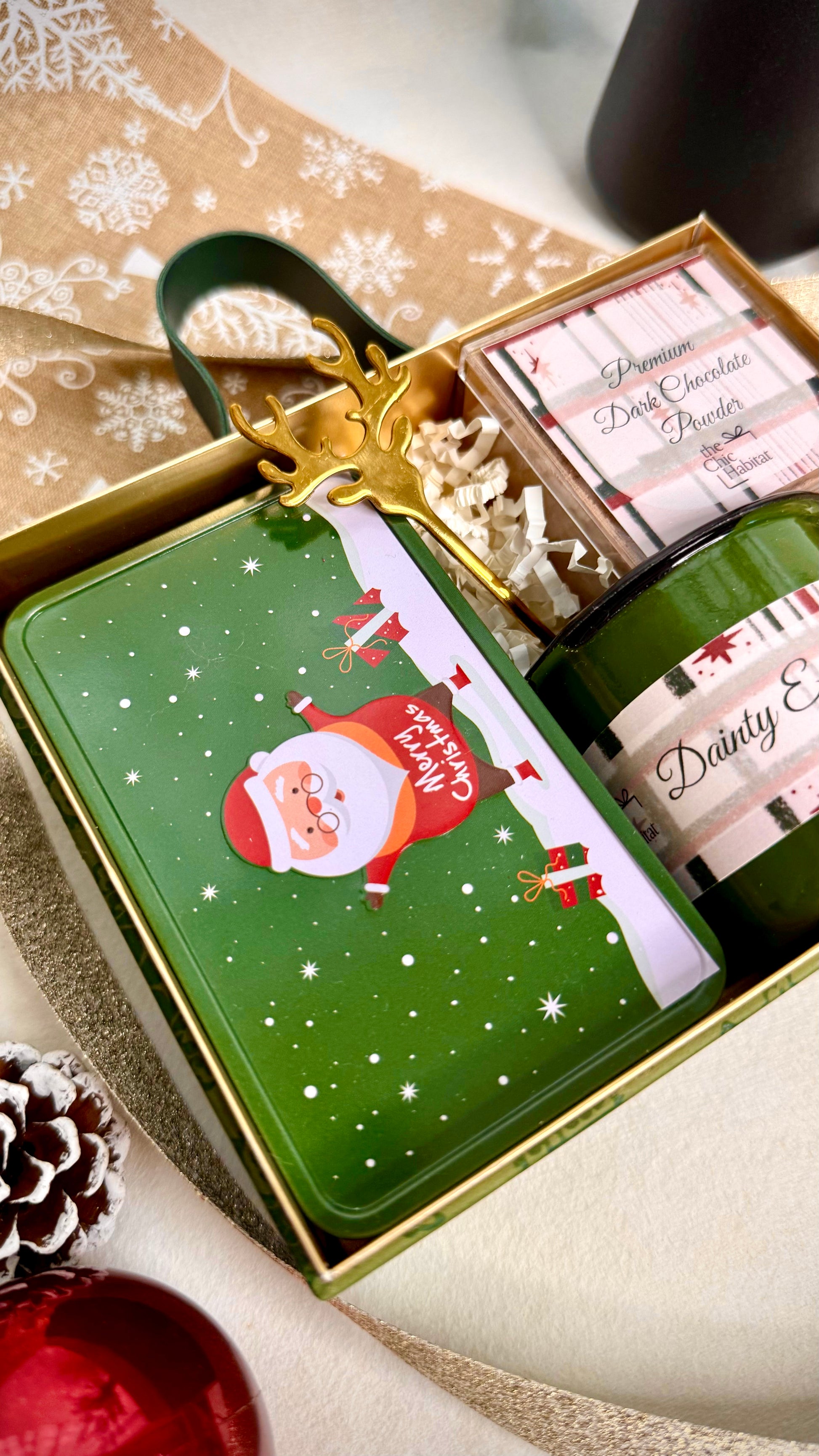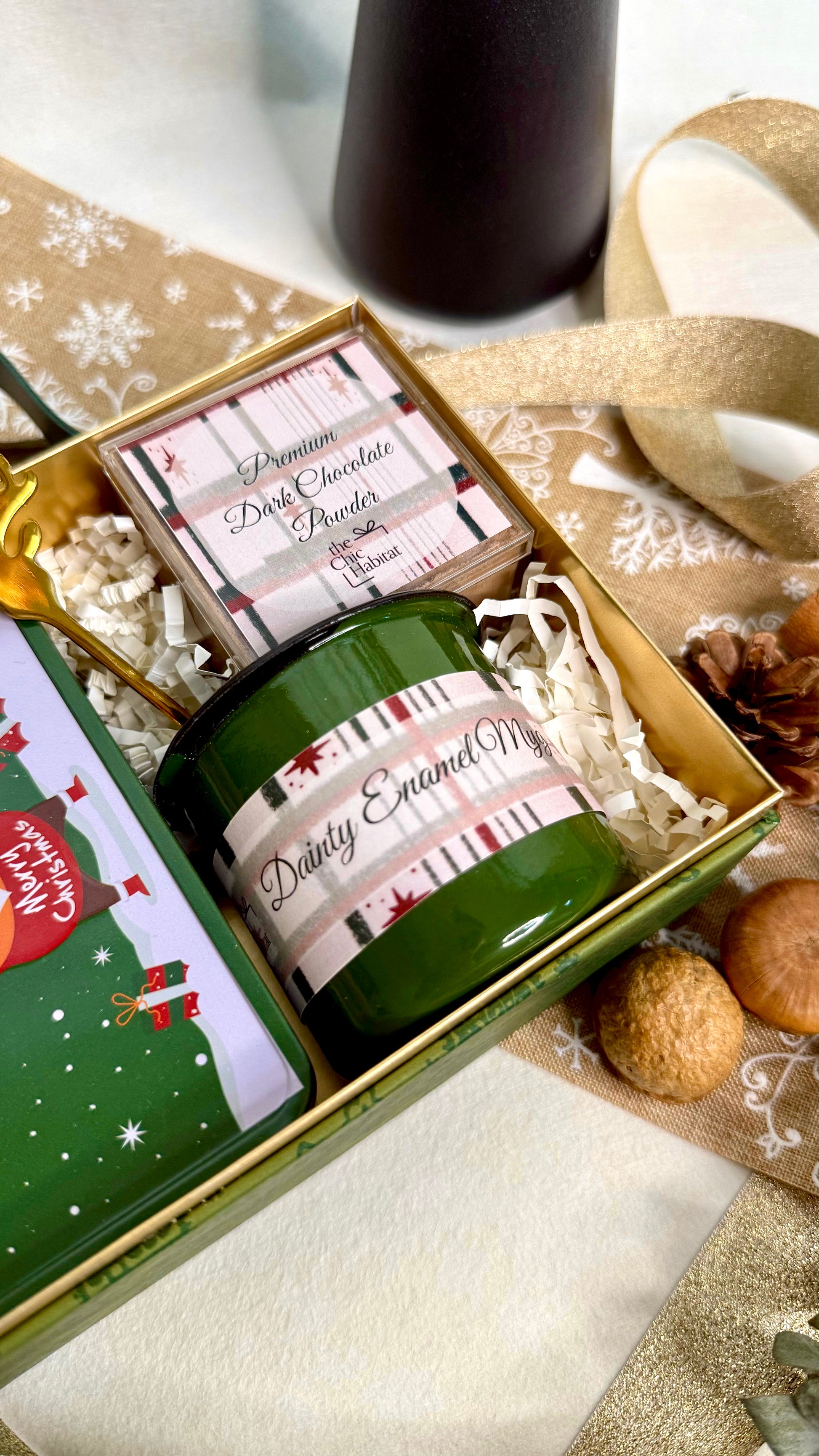 Wrap yourself in the warmth of the season with Fireside Glow. Featuring indulgent shortbread and chocolate cookies, rich chocolate powder, a reindeer spoon, and a mini enamel mug in festive red or green — this cozy set captures the heart of Christmas comfort. Perfect for slow mornings, sweet evenings, and every little moment in between. ✨