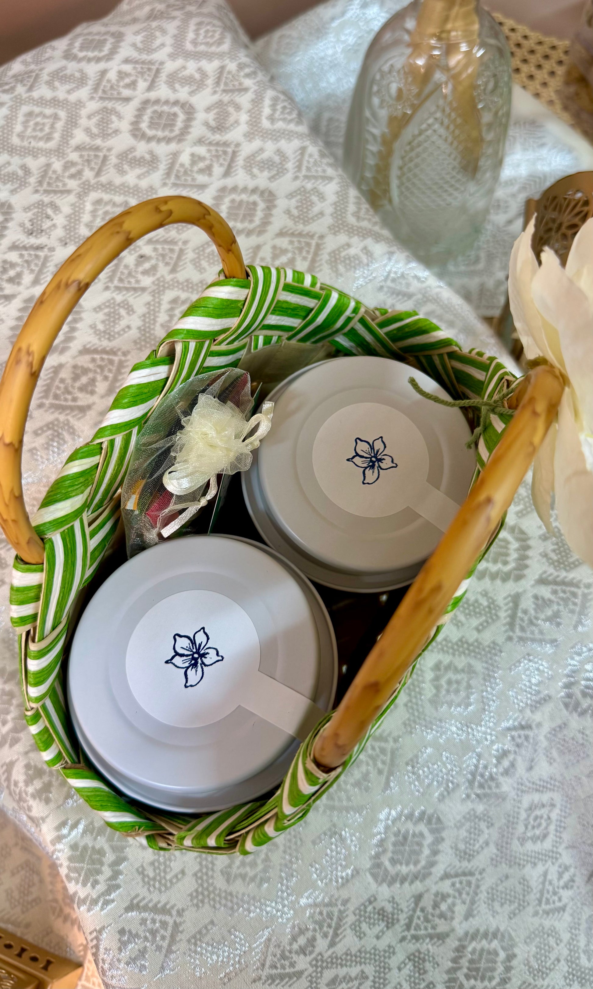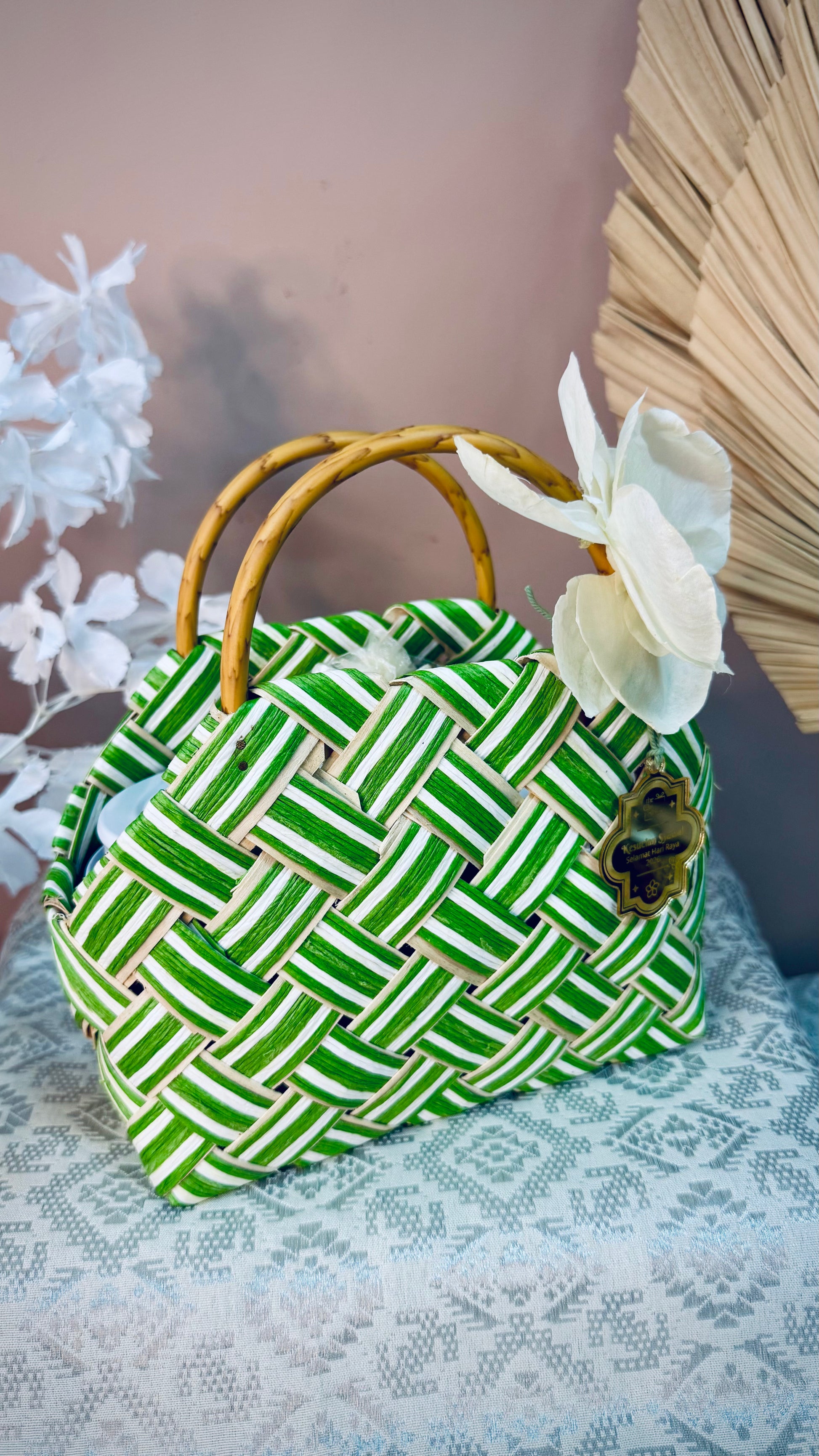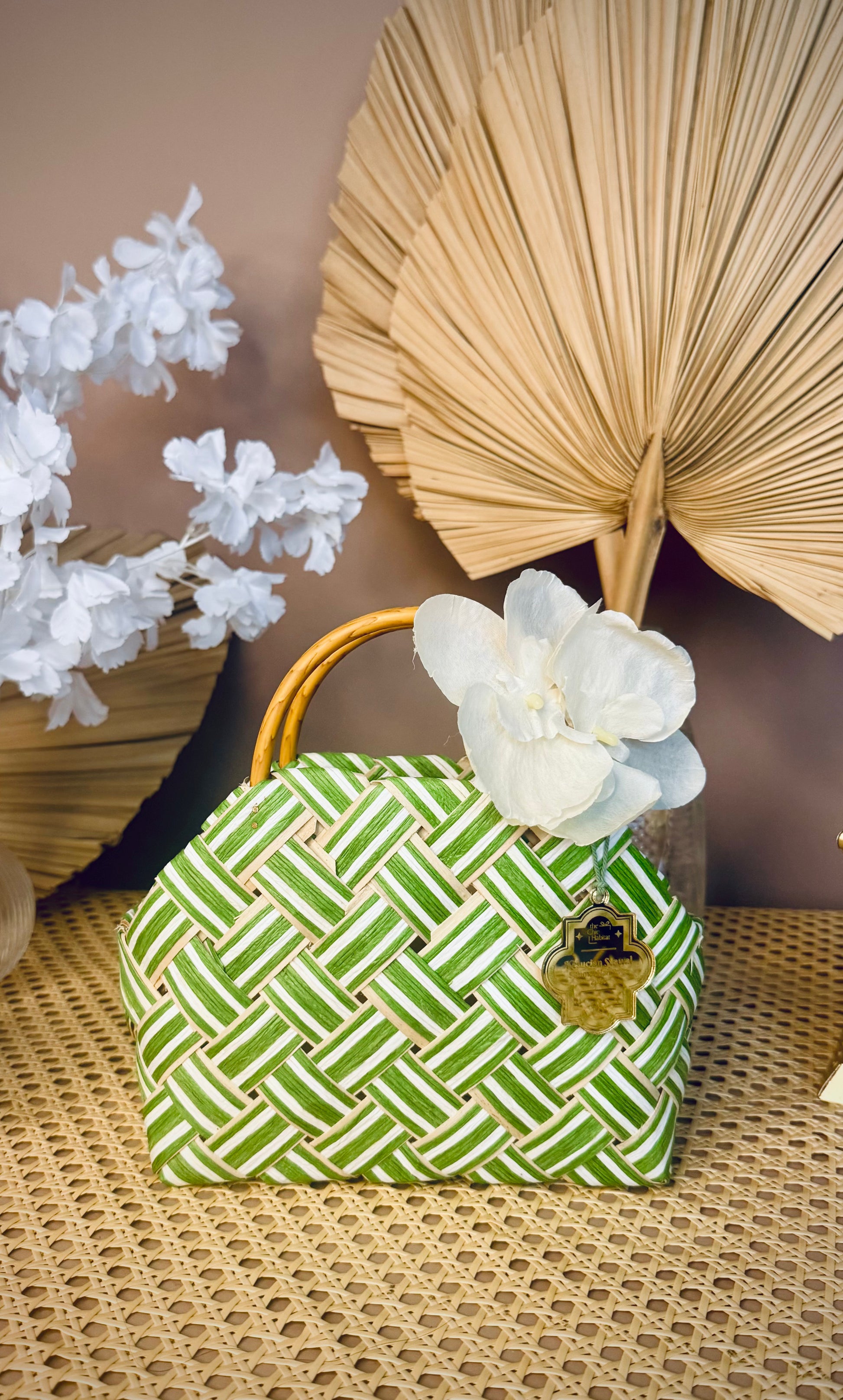 Packed in Woven Ketupat Handheld Basket (21x8x16cm) accompanied with Raya-themed Gold Mirror Acrylic Tag.Ā